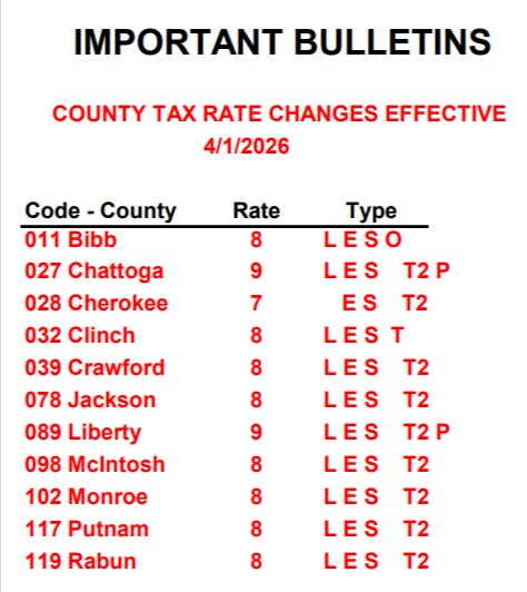Sales Tax Rate Change