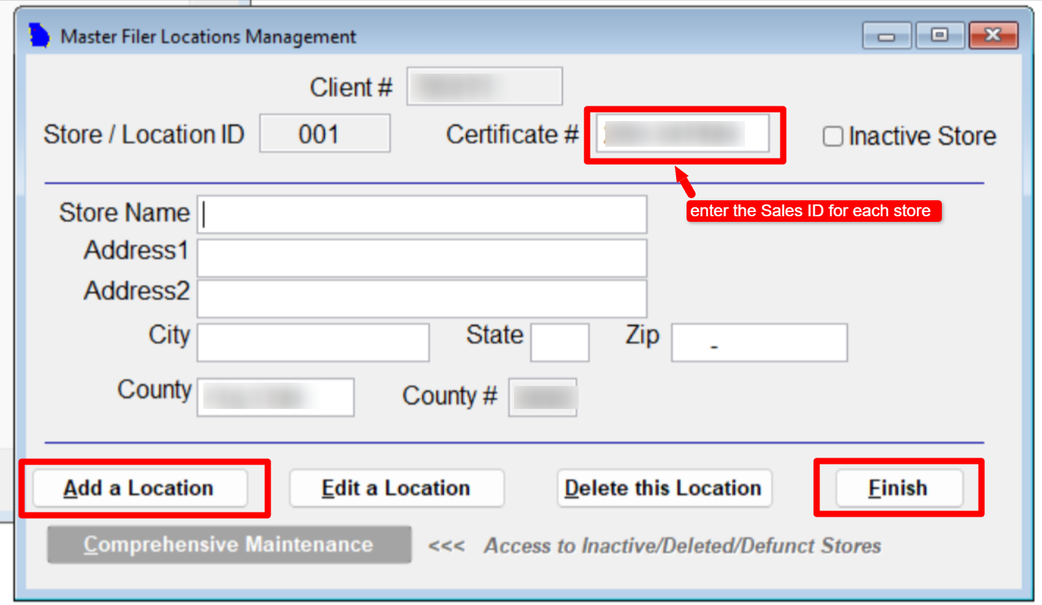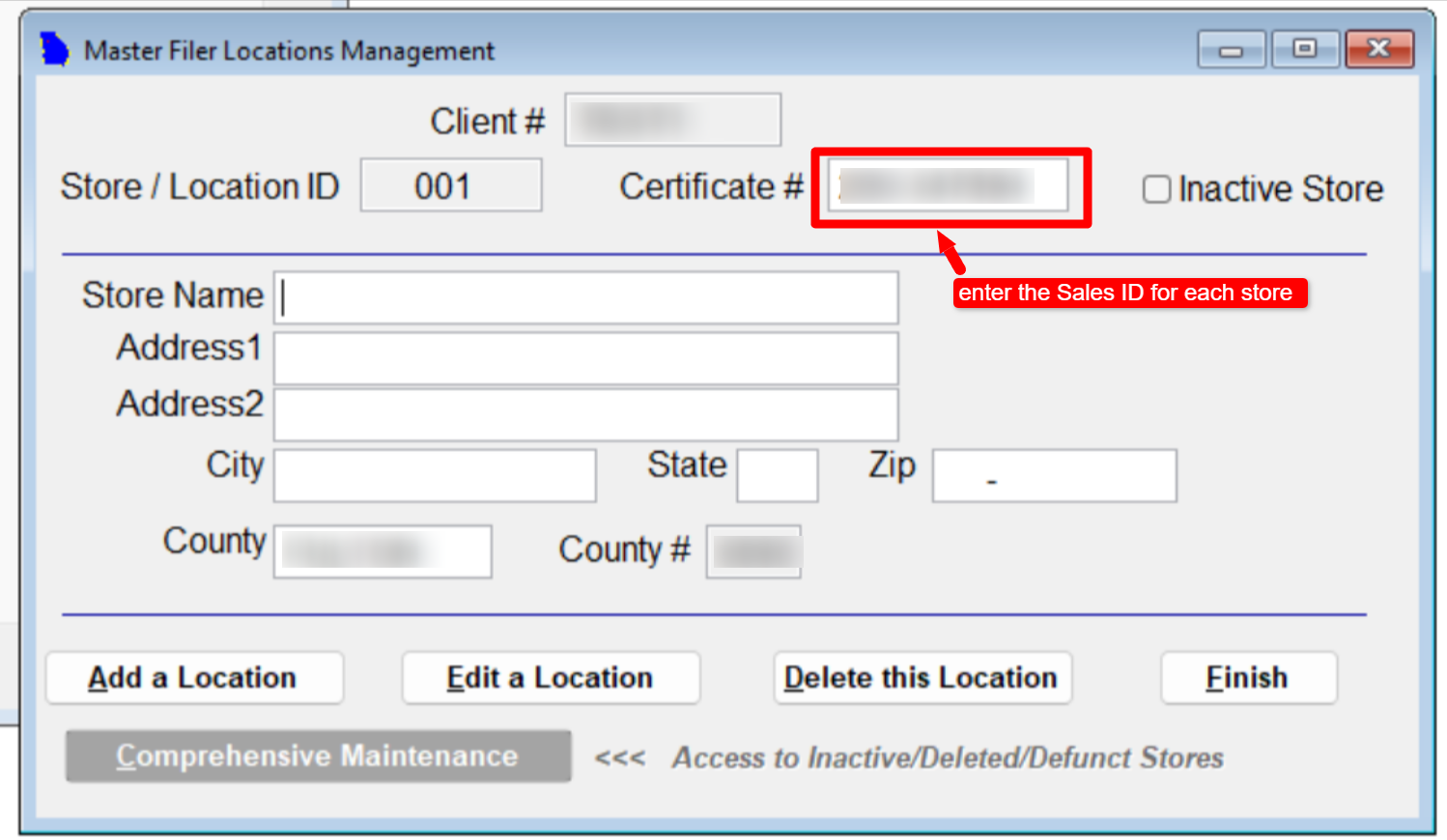 IMPORTANT: enter the certificate # (Sales ID) for the store. Each store will have its own Sales ID provided by GTC. You must enter this correctly