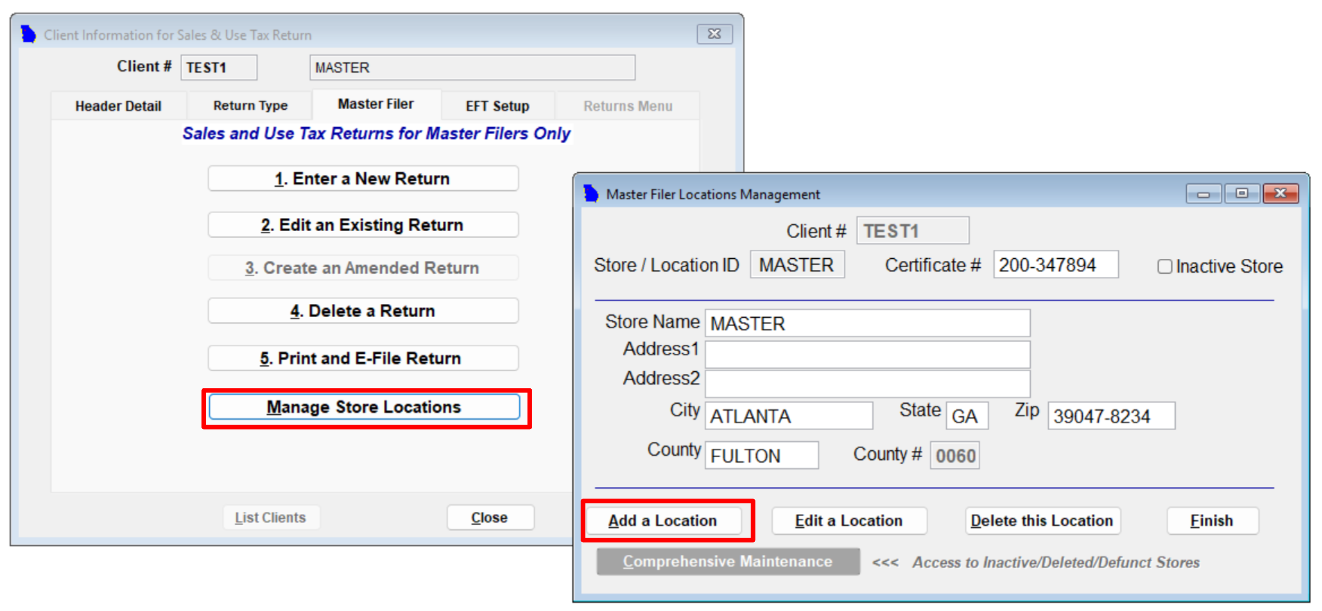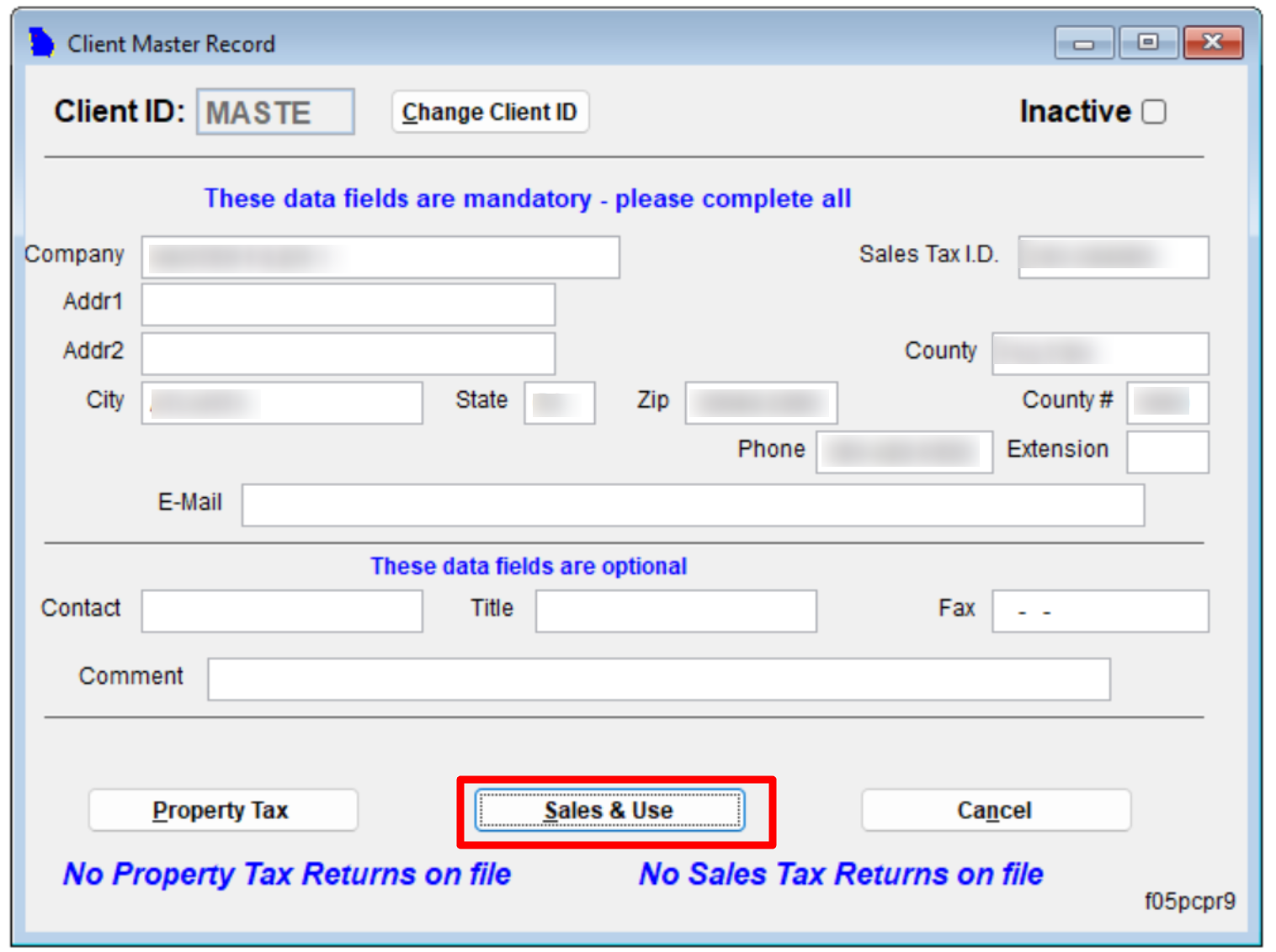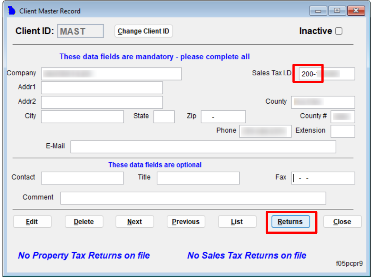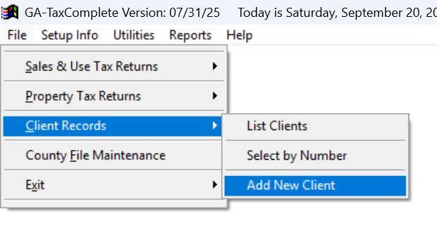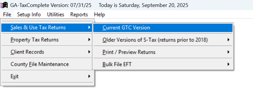 File > Sales & Use Tax Return > Current GTC Version. Select the client ID