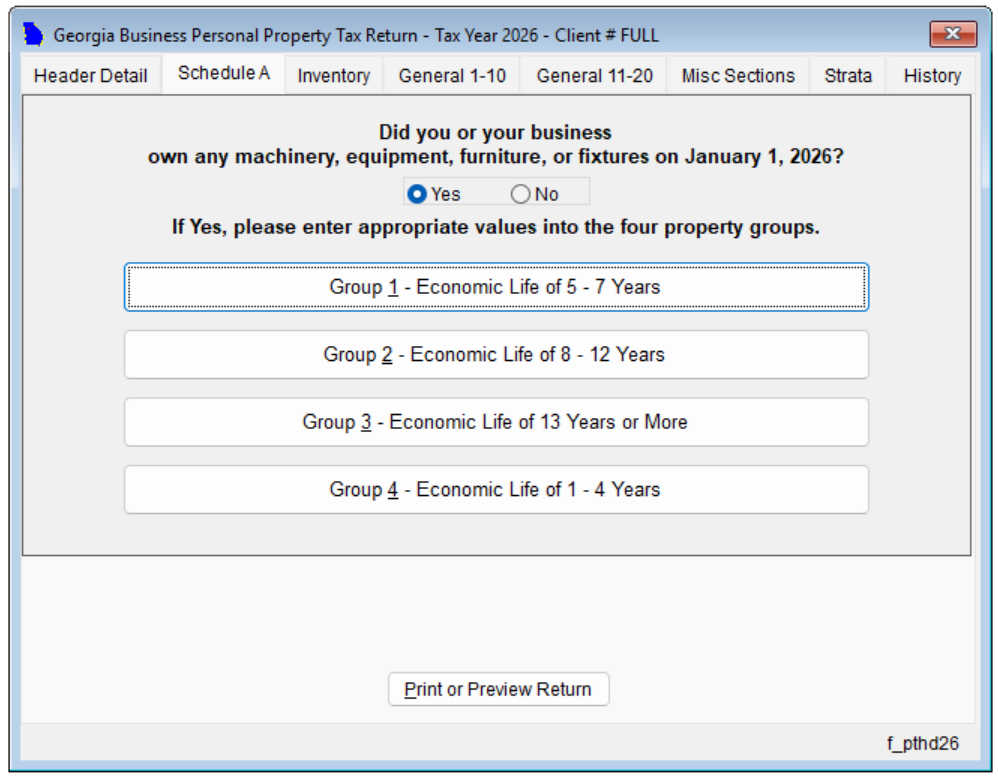 You will be presented with Group 1 - 4 of Schedule A