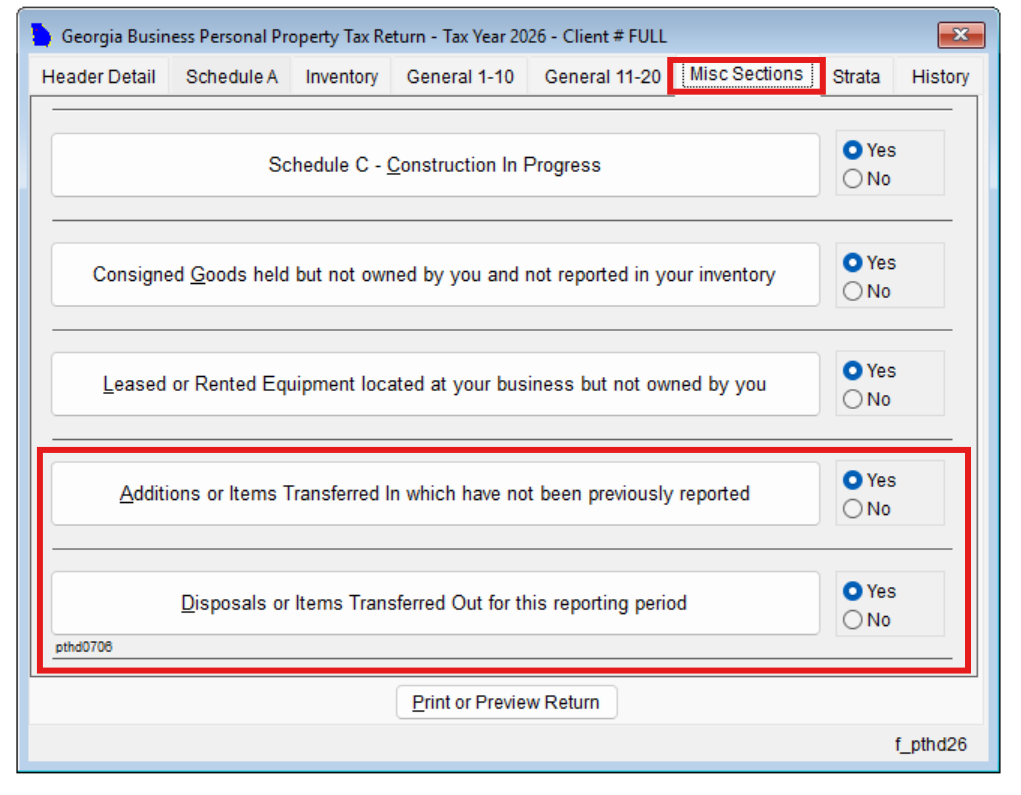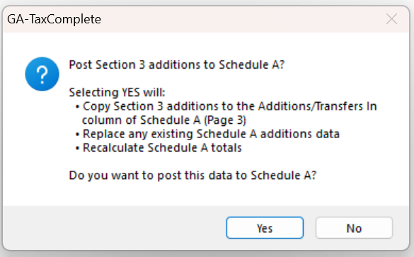 Click Yes to transfer the entered additions to the Additions column on Schedule A.