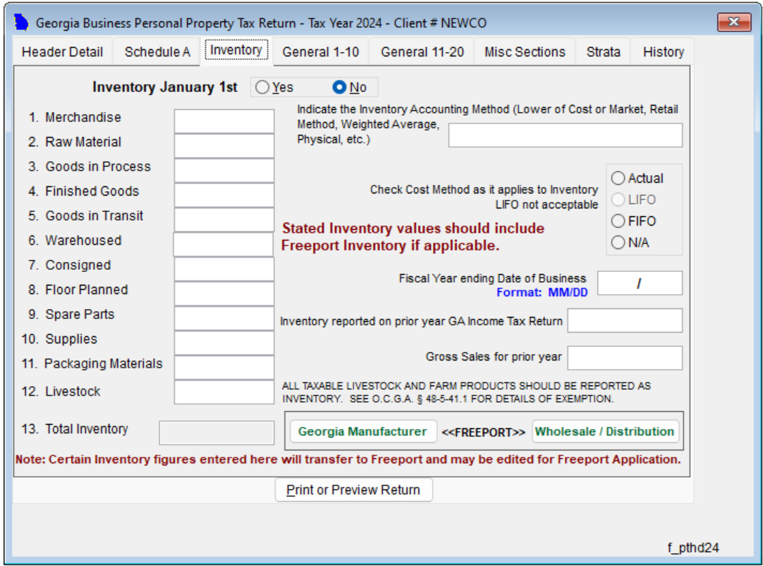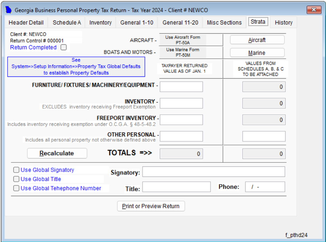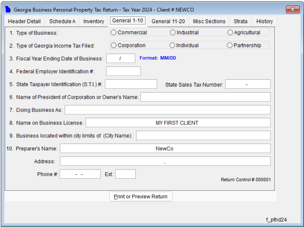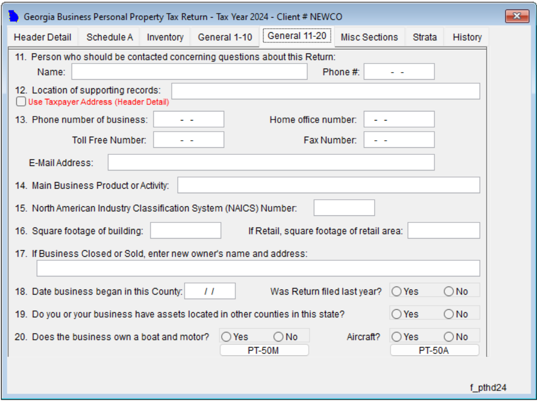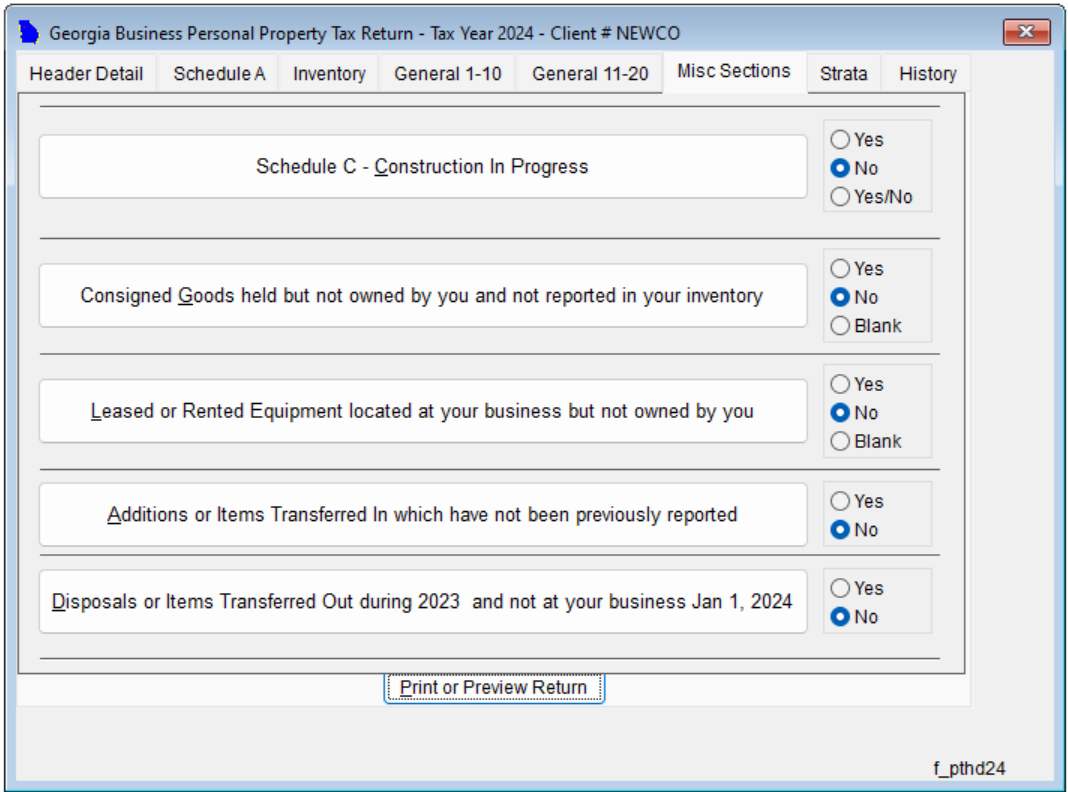 You should now complete the remaining tabs including: Inventory Tab, General 1-10, General 11-20, additional sections in the Misc Section Tab and Strata tab. Each tab is self-explanatory.