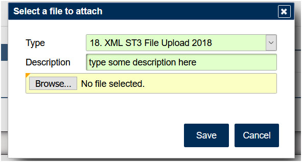 Select type “18. XML ST3 File Upload” (at the very bottom of the list) Hint: just type in the number “18” and it will populate the type for you.